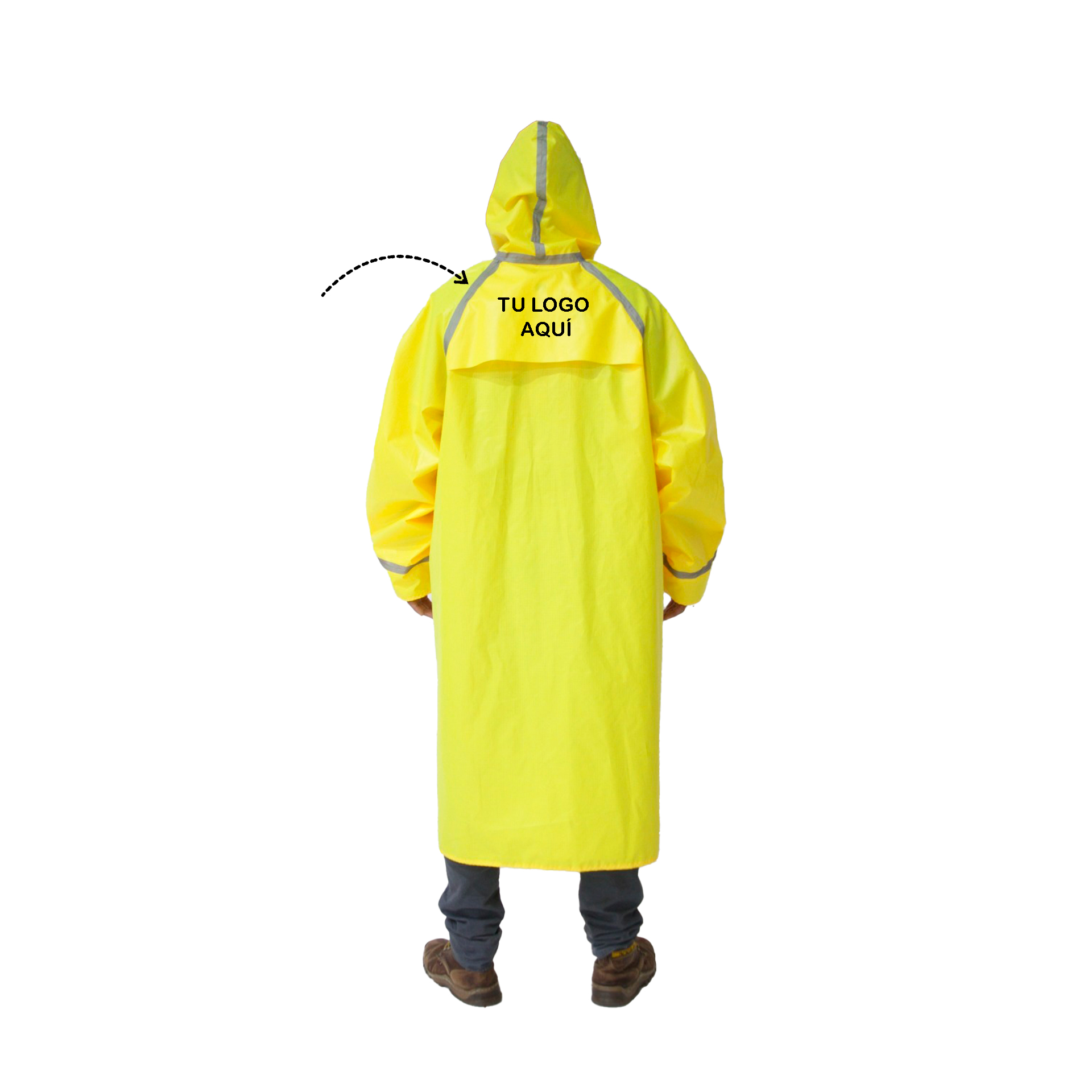 Traje de lluvia tipo pilotín confeccionado en poliéster color amarillo, diseñado para brindar protección contra la lluvia en entornos laborales o uso exterior. Incorpora detalles funcionales que mejoran el ajuste, la ventilación y la visibilidad.