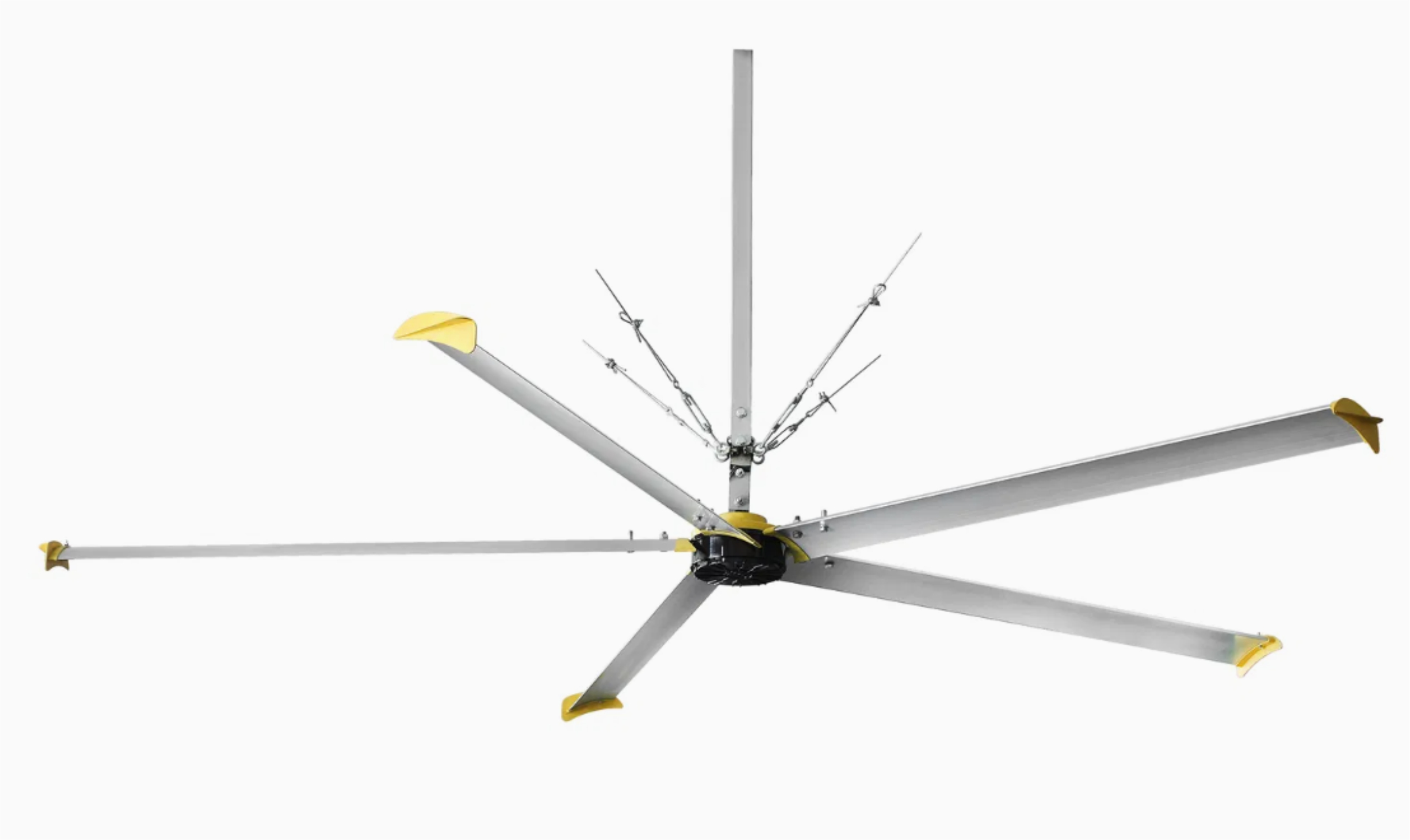 Ventilador industrial de gran porte, ideal para galpones, depósitos, gimnasios y espacios amplios de hasta 200 m². Ofrece un gran caudal de aire, bajo nivel de ruido y estructura reforzada para uso continuo.