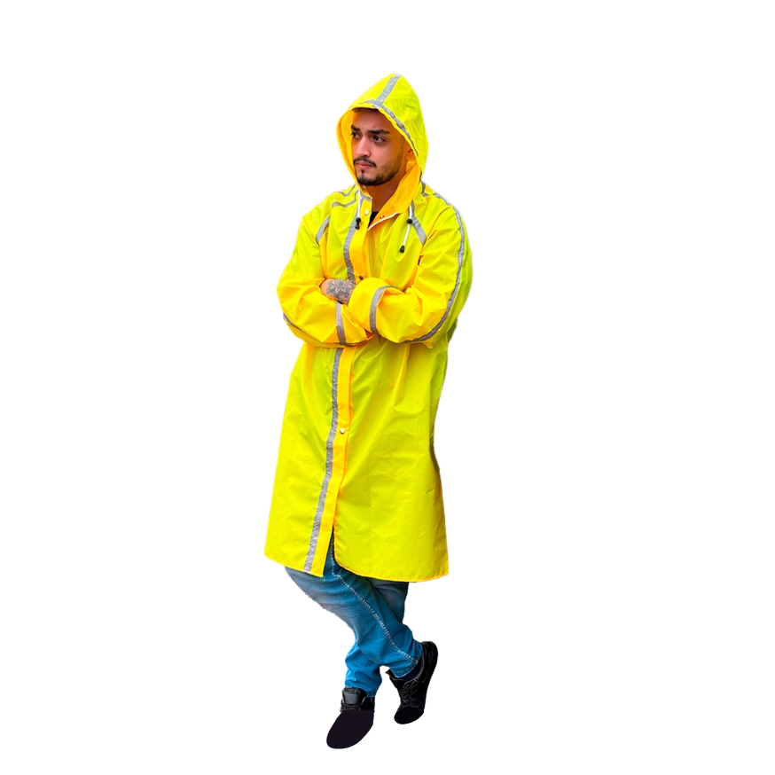 Traje de lluvia tipo pilotín confeccionado en poliéster color amarillo, diseñado para brindar protección contra la lluvia en entornos laborales o uso exterior. Incorpora detalles funcionales que mejoran el ajuste, la ventilación y la visibilidad.